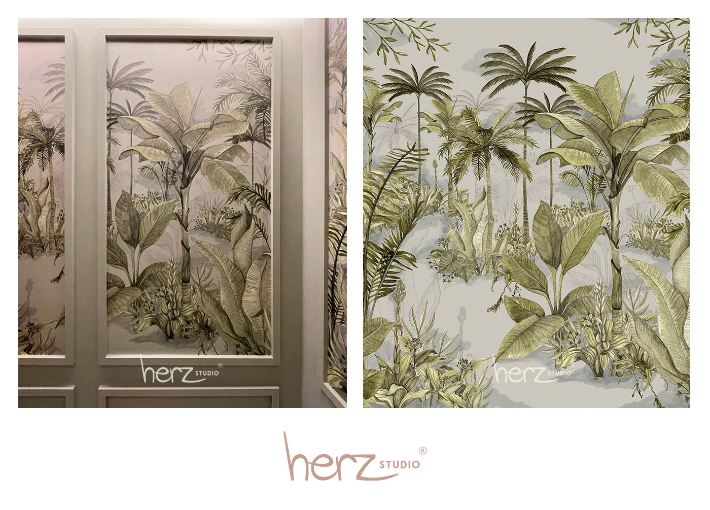 Arte produzida em papel de parede e aplicada em boiseries.