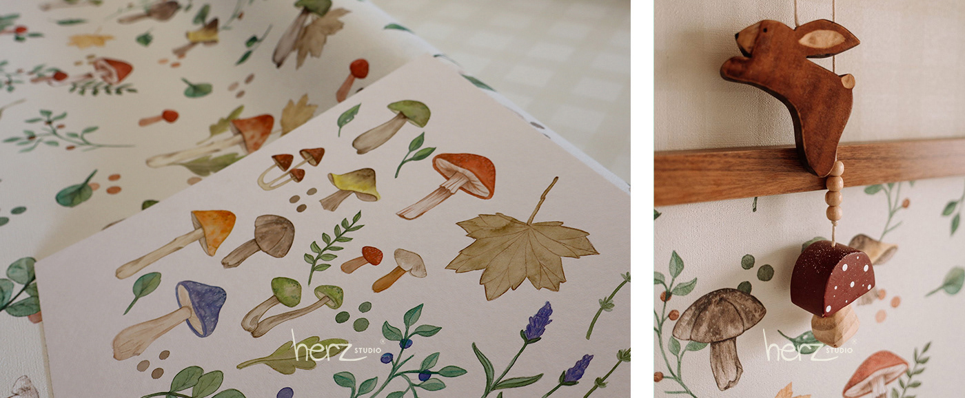 A técnica escolhida foi aquarela e finalização em lápis de cor. Cada elemento foi ilustrado individualmente e finalizada de forma digital.