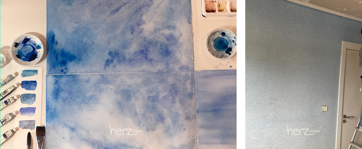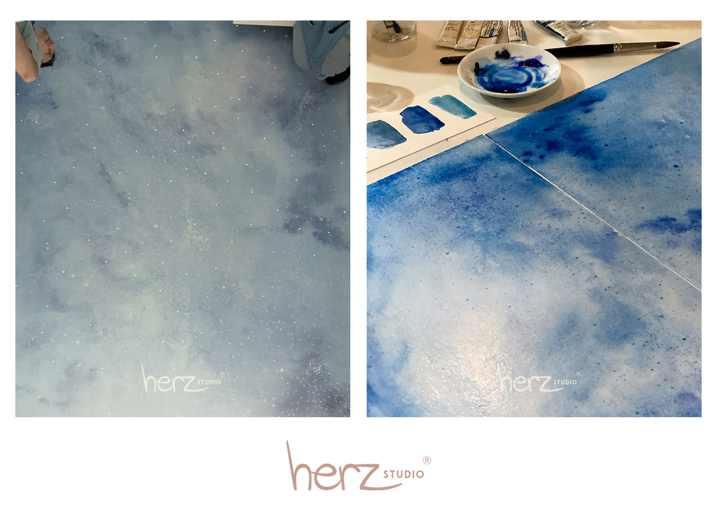 A girafa foi criada com duas opções de fundo. A opção com poás foi a escolhida!