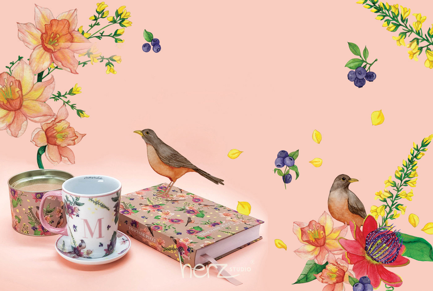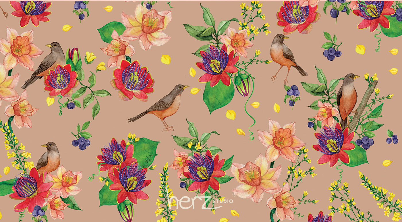 Sabiás e Maracujás - estampa exclusiva Herz Studio / Hamena.